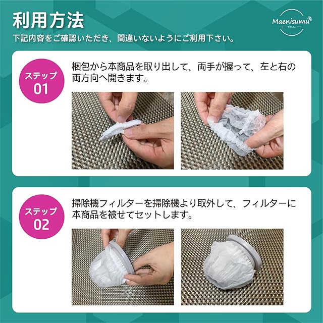 『使用便利』掃除機フィルターに被せて、掃除機にセットすれば、ほこりやごみなどが集められ、掃除機フィルターに汚れない、家事が簡単になります。
