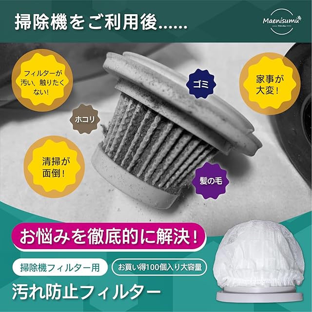 Maenisumu 100個入り 掃除機フィルター 使い捨て ゴミ取り クリーナー 不織布フィルター