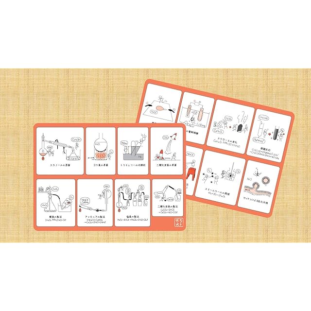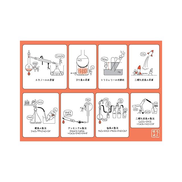チャート式でおなじみの数研出版による、理科好きのための数研グッズです。学校で習う16のたのしい化学実験を1枚の下敷きにまとめました。表に8つ,裏に8つの実験をコミカルなこびとのイラストで紹介しています。適宜,化学反応式が書いてあるので勉強のおともにも最適です。