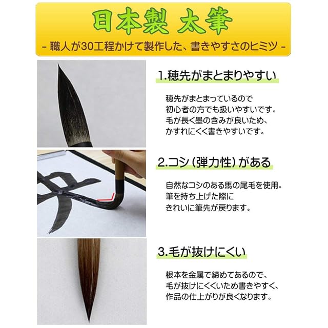 コシが強くまとまりやすい日本製太筆のセットです。卒園祝い・卒園記念品、新一年生・新入学準備品、入学祝い・入学記念品に最適!小学校の授業で使える小学生向け書道セットです。