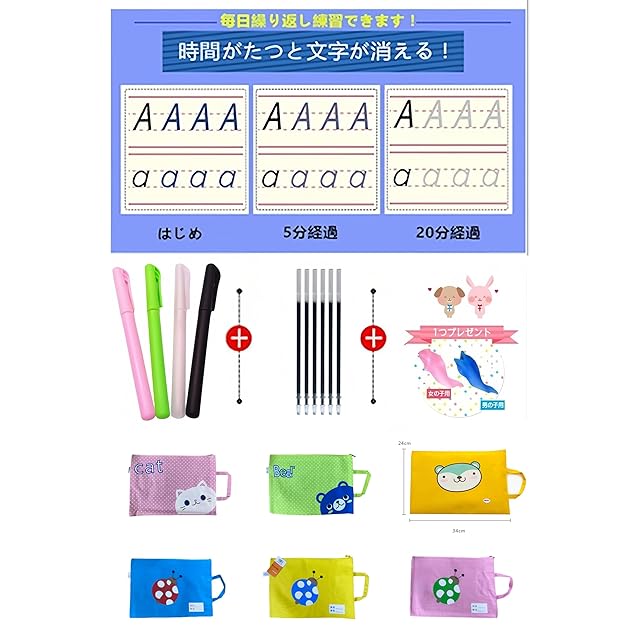 ご注意:●シートに汚れもしくは傷もしくはシワがあります。使用には問題がありません。不良品として安く売っていますので、返品不可です。 セット内容:ひらがな8枚、カタカナ8枚、かけ算5枚、たし算3枚、ペン1本、袋1枚です。 ●わかりやすい書き順つきで、正しくきれいな文字のお勉強用シートです。 ●何度でもくり返し練習ができ、楽しいので自ら進んで学習できます。 ●筆跡は数分程度で消え、ボードを洗う手間や消した後のカスが散らかる心配はない。 ●ペンの正しい持ち方が自然に身に付くプニュグリッププレゼントいたします。 ● プニュグリップを使用すればペンの正しい持ち方が身につきます。 ●クリアケース破損を防止するため、ファイル袋にでしています。