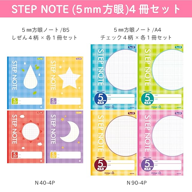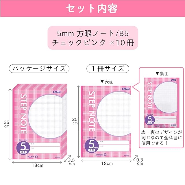 サクラクレパス 学習帳 5mm方眼 N114(10) チェックピンク 10冊