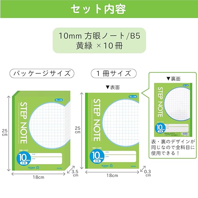 商品名:サクラクレパス 学習帳 10mm方眼 N135(10) 黄緑 10冊
