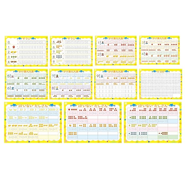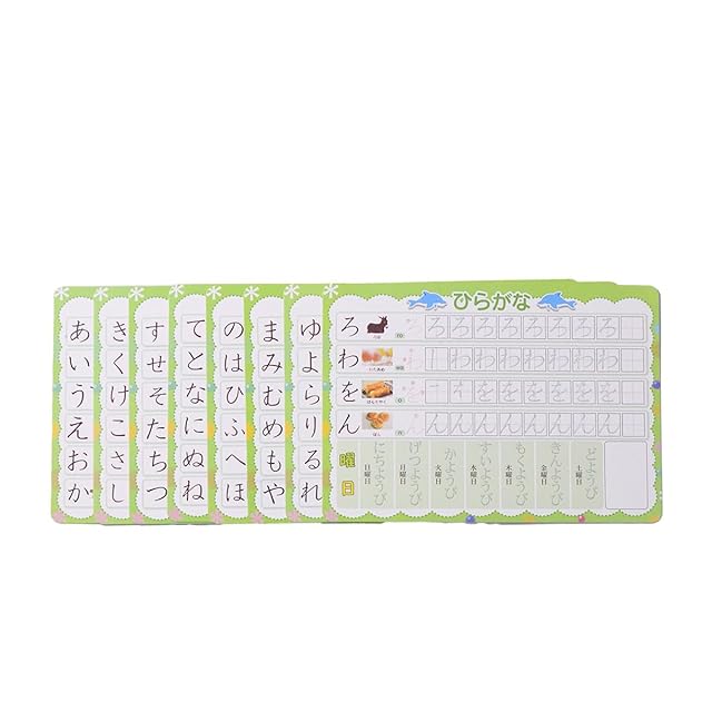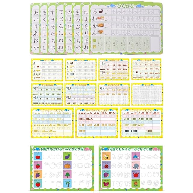 ※ワケアリ商品です。一部シートに汚れもしくはキッズがありますが。使用には問題がありません。返品不可です。 セット内容:ひらがなシート8枚、すうじ11枚 、バッグ1つです。