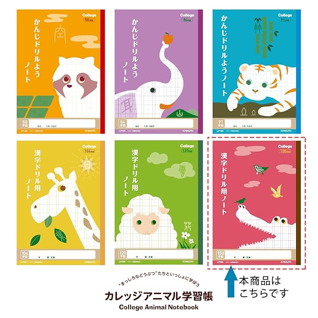 商品名:キョクトウ 学習帳 カレッジアニマル 漢字ドリル用 150字 B5 LP63 10冊