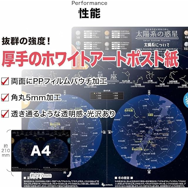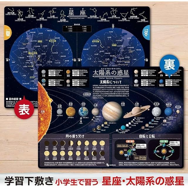 商品名:下敷き 星座 太陽系の惑星 A4(21×29.7cm) 角丸・両面タイプ 書きやすい 学校 勉強 理科 宇宙 Archest