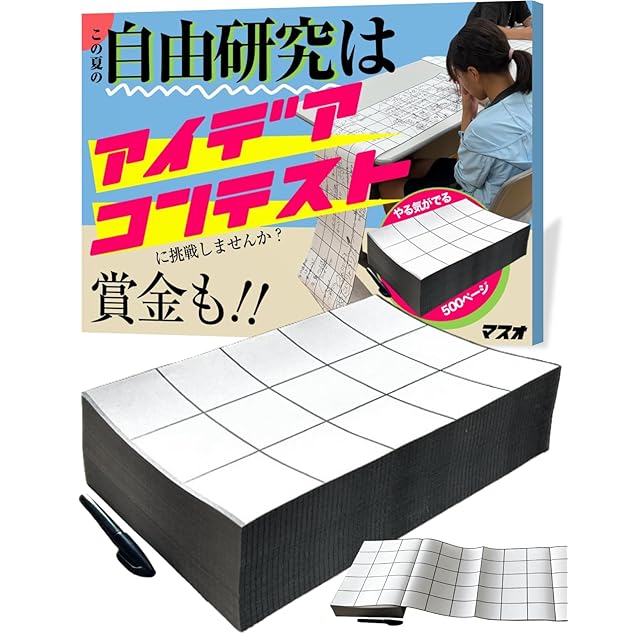 【マスオ】自由研究対策 夏休みにアイデアコンテストに挑戦する発想キット 中身は用紙のみ 高学年 小学4年生 小学5年生 小学6年生 男の子 女の子 工作の前にも 折り目にミシン目 500ページA4蛇腹