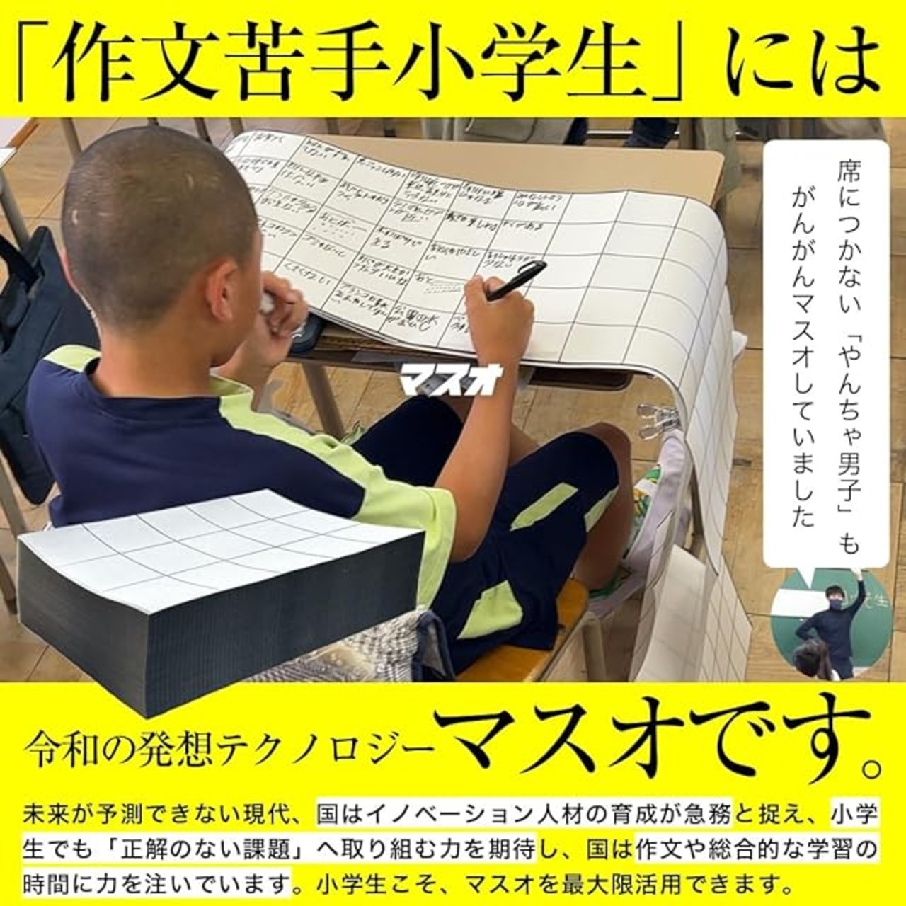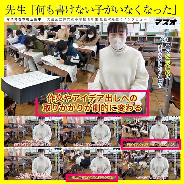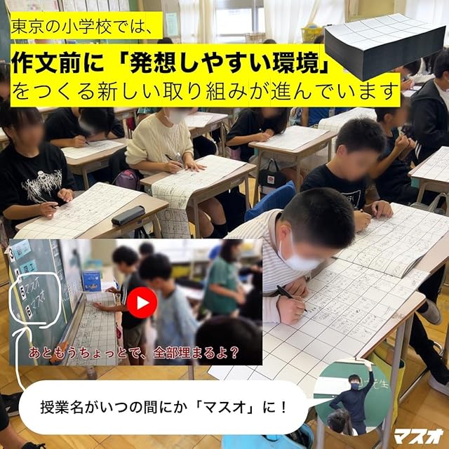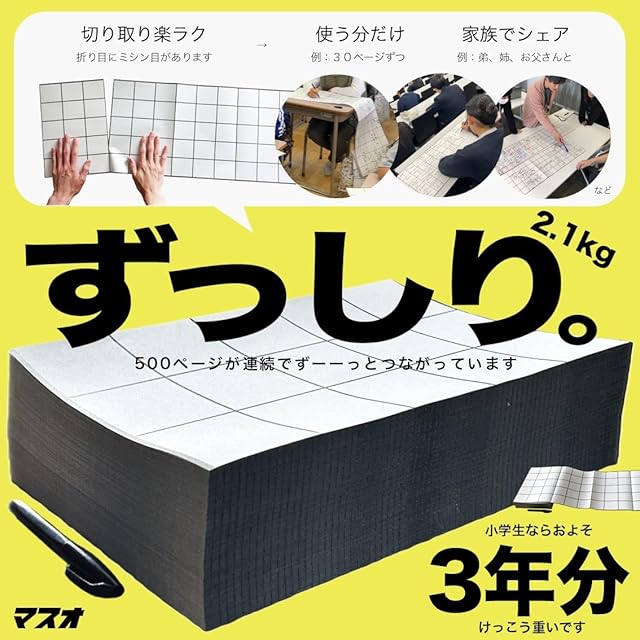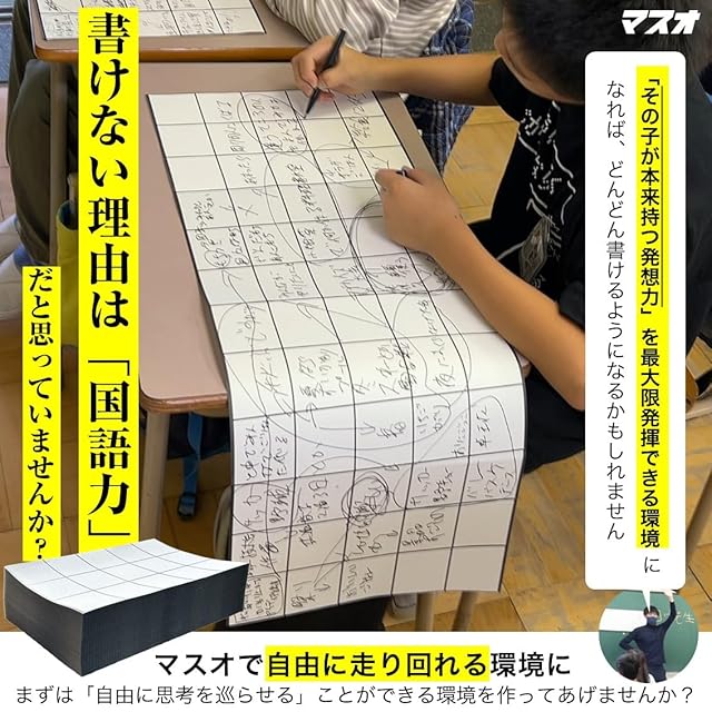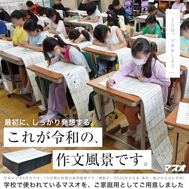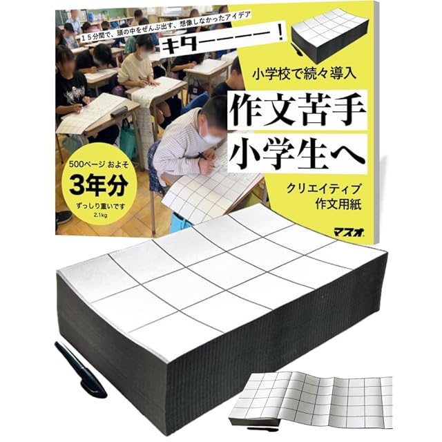 【マスオ】作文苦手小学生向け 「ペンが進まない…」と悩む子に 何でもかんでも書いてOK クリエイティブ作文用紙 全国の小学校が続々導入中 折り目にミシン目 500ページA4蛇腹