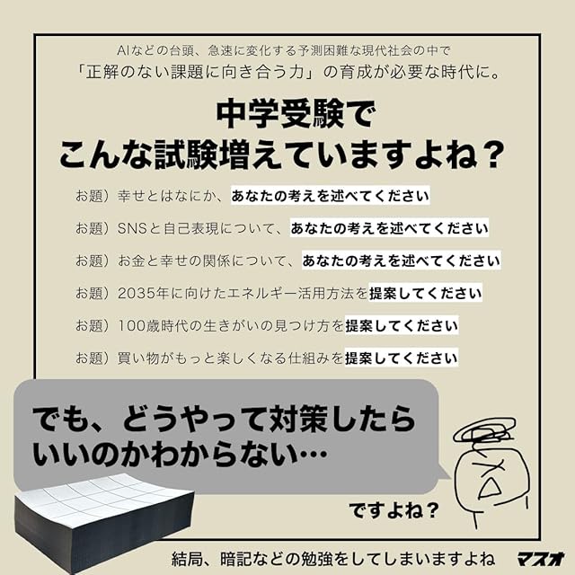商品名:【マスオ】中学受験対策 「あなたの考えを述べよ」「~を提案せよ」 正解のない課題が苦手な小学生に 本格的な発想用紙 折り目にミシン目 500ページA4蛇腹