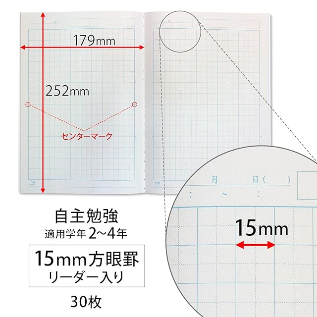 【罫内容】15mm方眼罫中心リーダー入り