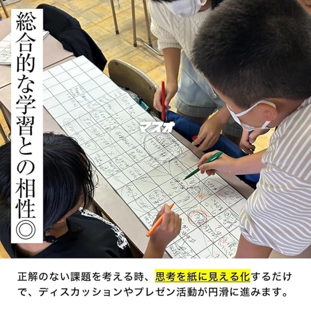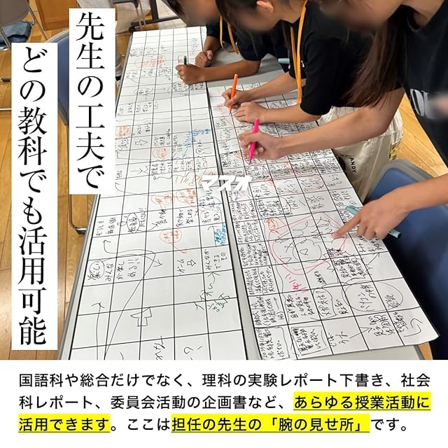 【探究学習との相性◎】 正解のない課題を考える時、思考を紙に見える化するだけでディスカッションやプレゼン活動が円滑に進みます。