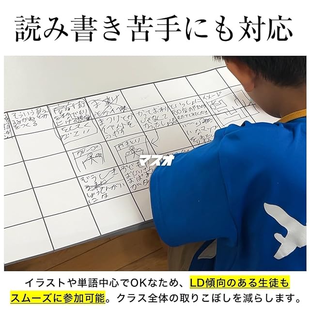 【LD傾向のある子にも対応】 イラストや単語中心でOKなため、読み書きが苦手なLD傾向のある生徒もスムーズに参加可能。クラス全体の取りこぼしを減らします。