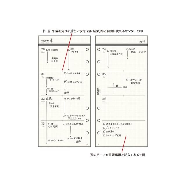 商品名:ノックス システム手帳 リフィル 2026年 ナロー ウィークリー 見開き1週間 52200126 (2026年1月始まり)
