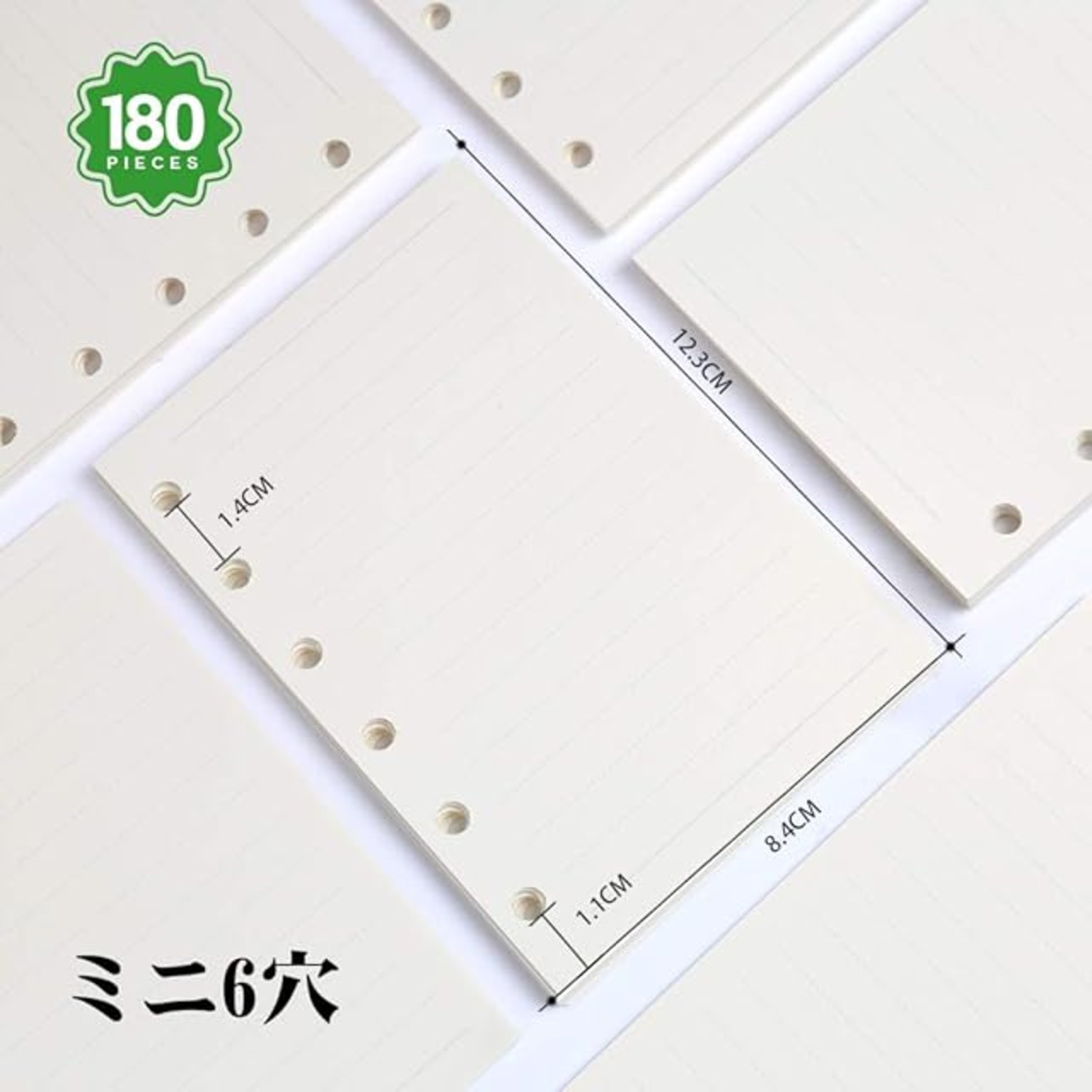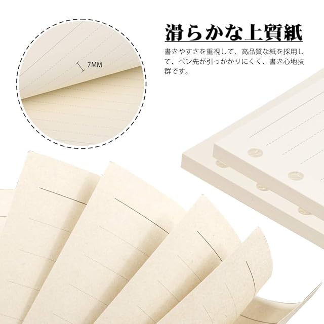 ミニ6穴サイズ✑ サイズ:A7(W82×H123mm) 7㎜横罫 14行 6穴タイプ 穴直径: 5㎜ 穴間隔:14mm 便利、持ち運びしやすいポケットサイズリフィル