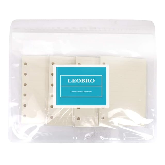 <p><b>すぐに書き込める使いやすさ<br> いつも気軽に持ち歩けるサイズ感<br> 書くこと、考えることに集中できるシンプルさ<br> 全部まとめて新しいLEOBROミニ6穴リフィルが登場</b><br> <p><b>コンパクト</b><br> 小さい、持ち運びしやすいミニ6穴サイズで、ポケットにすっぽり収まります。旅行の時バックのサイドポケットに入りるし、財布と一緒に持ち歩いてもジャマにならないし、コンパクトさが魅力です。<br> <p><b>スムーズな書き心地</b><br> コピー用紙より厚い上質紙を採用していて、引っかかりが無く滑らかな手触りで、ペン先が引っかかりにくく書き心地が滑らかで、ボールペン、万年筆、ゲルインキボールペンなどに適します。<br> <p><b>クリーム紙</b><br> 紙の色合いも真っ白ではなく、高級感のある薄いクリーム紙で、色で、目に優しく、長時間ノートに向き合っても目が疲れにくいです。<br> <p><b>多用途</b><br> 手頃な大きさで使いやすい、仕事・プライベート問わず、幅広く使用できます。目上の方との商談や、電話中にぱっと思いついたアイデアや、図、用件などをさっとメモするのにびったり。<br> <p><b>仕様:</b><br> 素材:上質紙<br> サイズ:ミニ6穴 A7(W82×H123mm)<br> 枚数:4冊セットで180枚 360ページ<br> 色:薄いクリーム<br> 罫数:7㎜横罫 14行<br> 穴直径: 5㎜ 穴間隔:14mm<br> (多少の誤差はご容赦下さい)<br> <p><b>ご不明な点がございましたら、遠慮なくお問い合わせください。</b><br>