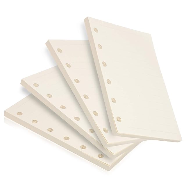 LEOBRO 【4冊セット】 メモ帳リフィル システム手帳リフィル 手帳リフィル ミニ6穴 A7 ポケットサイズ 横罫7mmクリーム 180枚