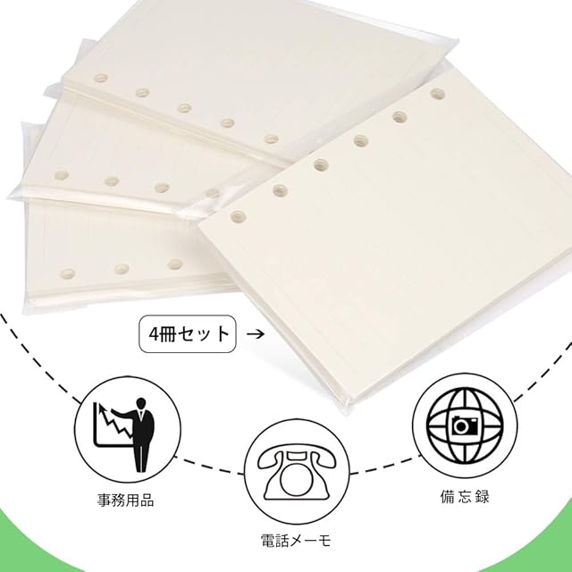 商品名:LEOBRO 【4冊セット】 メモ帳リフィル システム手帳リフィル 手帳リフィル ミニ6穴 A7 ポケットサイズ 横罫7mmクリーム 180枚