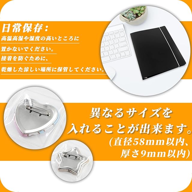 【高品質生地】:缶バッジ 収納、カードは高品質のPP素材を使用しています、折り目が出にくい。高品質金具、丈夫で耐久性抜群。透明度が高いのでキレイに中身が透ける!鑑賞にも最適!!!