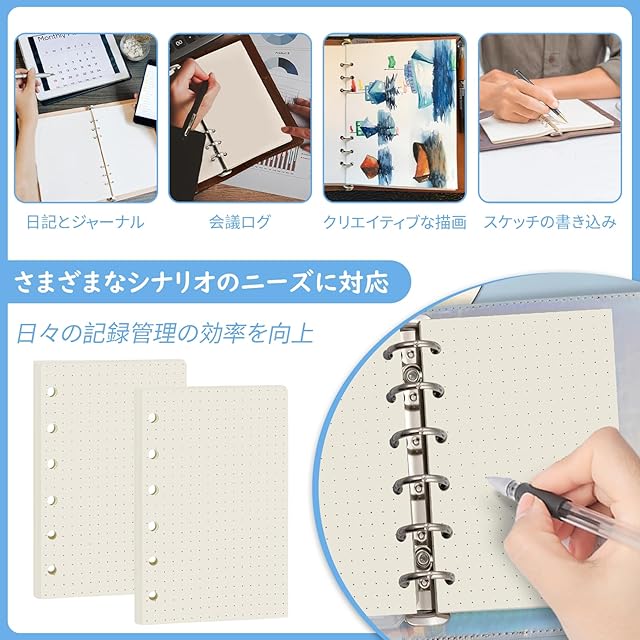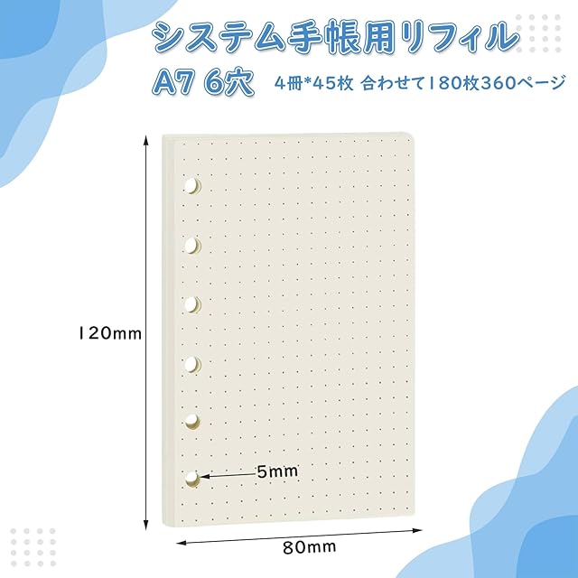 商品名:BLOOPIC 手帳リフィル システム手帳 A7サイズ 45枚*4冊 6穴 システム手帳用 滑らかな書き心地 ルーズリーフ用 バインダー用 詰め替え用紙 (ドット紙)