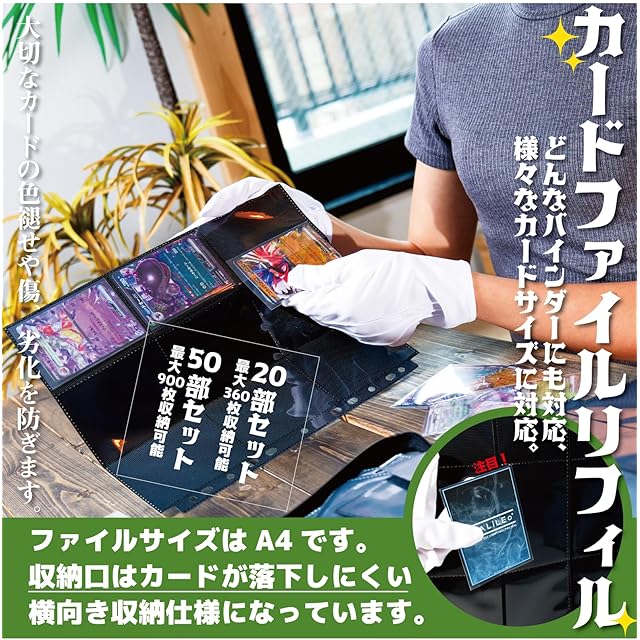 トレカ リフィル カードファイル 2穴・3穴・4穴対応 片面9ポケット 両面計18ポケット カードシート ポケカ 収納 (50枚セット)
