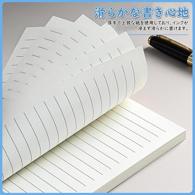 【滑らかな書き心地】: 厚手で上質な紙を使用しており、インクが滲まず滑らかに書けます。万年筆、ボールペン、ゲルペンに適しており、鮮明できれいな筆跡をし、優れた書き心地をもたらします。