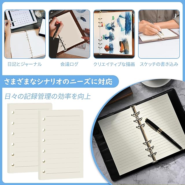 商品名:BLOOPIC 手帳リフィル システム手帳 A7サイズ 45枚*4冊 6穴 システム手帳用 滑らかな書き心地 ルーズリーフ用 バインダー用 詰め替え用紙 (ライン紙)
