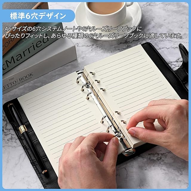 【標準6穴デザイン】: A7サイズの6穴システムノートや6穴ルーズリーフブックにぴったりフィットし、あらゆる種類の6穴ルーズリーフブック、スケジュールマニュアル、旅行ノートに適しており、ノートの内側のページを交換するのに最適です。