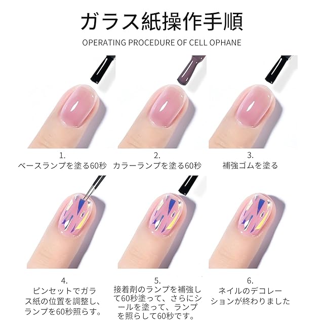 【特別な効果】ガラス紙は爪のベッド全体に置くことができます。また、層分けして使うこともできます。作品の配置が乱れればするほど、デザインが効果的で自然的になります。