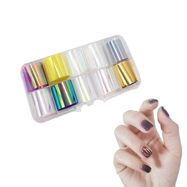 【多彩な色】10種類の多彩な色のオーロラの爪の箔、オーロラの箔の断片は宝石の刻印のように光を反射します。照明の下では角度ごとに違った色が出ます。