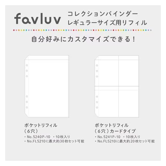 商品名:キングジム favluv ファブラブ レギュラーサイズ用ポケットリフィル 6穴 10枚入 5240P-10