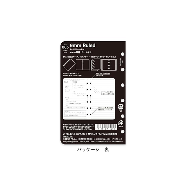 商品名:ミニ6穴サイズ PLOTTER/プロッター 6mm罫線 メモパッド システム手帳リフィル 77716
