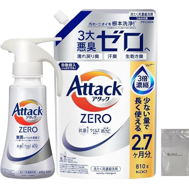 アタックZERO アタック液体史上 最高の清潔力。無菌レベルの消臭力 本体400g 詰替え810g ロゴ袋付き