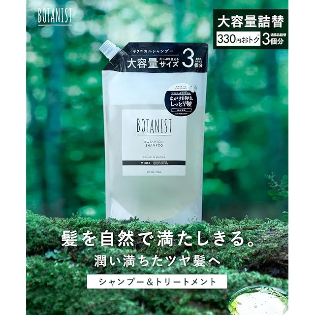 「髪を自然で満たしきる」 まとまりのある、しっとりとした髪に洗い上げます。 華やかで優雅なアプリコットとジャスミンの香り [シリコンフリー パラベンフリー 合成着色料フリー サルフェート※1 フリー] ①全バリアントに新配合成分を含む共通成分「濃密ボタニカル美容液※2」 「濃密ボタニカル美容液※2」が叶える3つのケア ・地肌ケア … 2種のシラカバウォーター※3、グリチルリチン酸2K(保湿成分) ・保湿ケア … サトウキビ糖蜜※4、コメセラミド※5(ナノ化) ・ダメージケア … マカダミアナッツオイル※6(ナノ化)、ボタニカルマイクロプロテイン※7 ②5種の仕上がりのラインナップごとに厳選した植物成分を配合 アンズ核油(保湿成分) ③環境に優しい 詰替パウチ ・環境に優しい再生プラスチック使用で石油由来原料を削減 ・本体容器よりも廃棄プラスチックを約87%削減できます ※1 硫酸系界面活性剤 ※2 シラカンバ樹液、ガラクトミセス/シラカンバ樹液発酵液、トウミツ、スフィンゴ糖脂質(全て保湿成分)、マカデミアナッツ脂肪酸フィトステリル、加水分解野菜タンパク(全て毛髪補修成分) ※3 シラカンバ樹液、ガラクトミセス/シラカンバ樹液発酵液(すべて保湿成分)※4 トウミツ(保湿成分)※5 スフィンゴ糖脂質(保湿成分) ※6 マカデミアナッツ脂肪酸フィトステリル(毛髪補修成分)※7 加水分解野菜タンパク(毛髪補修成分)
