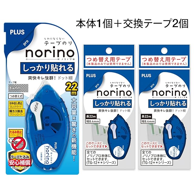 商品名:プラス プリット テープのり ノリノプロ (しっかり貼れる) 本体+詰め替えテープ2個付 39-243 & 39-246