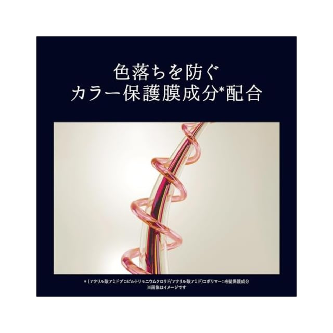 カラー保護膜成分*1配合処方で、髪のカラー成分とタンパク質をぎゅっと閉じ込める。 *1(アクリル酸アミドプロピルトリモニウムクロリド/アクリル酸アミド)コポリマー:毛髪保護成分