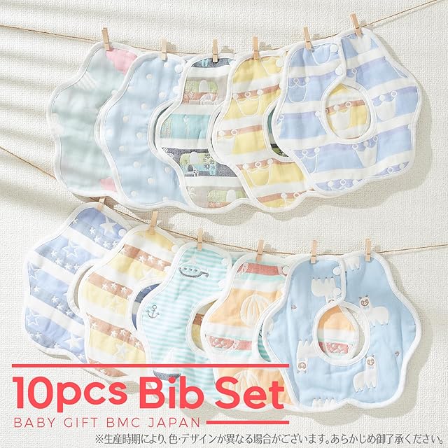 商品名:[BMC bib.] スタイ 10枚 セット よだれかけ ビブ 綿100% 柔らかい 6重 ガーゼ 花形 360° (ブルー)