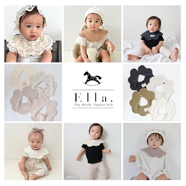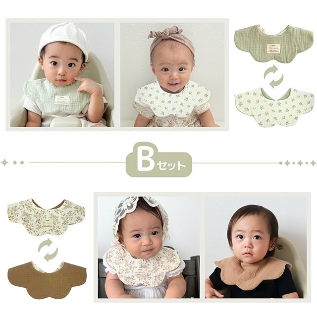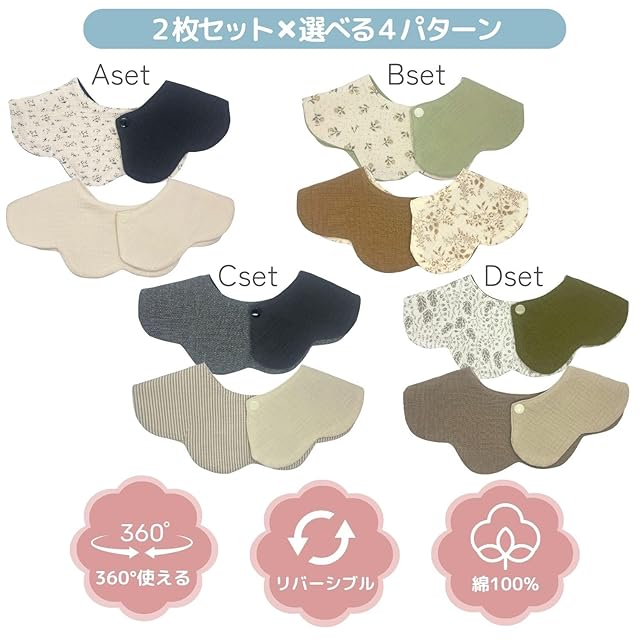 [Ella.] 360° スタイ 2枚セット リバーシブル シンプル おしゃれ ベビー 赤ちゃん コットン 綿 かわいい くるくる 360 よだれかけ ベビービブ 男の子 女の子 無地 (Bセット)