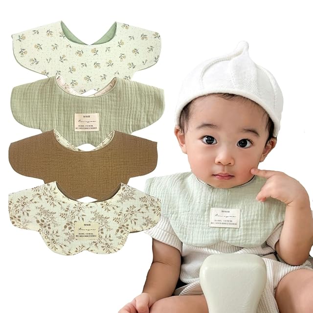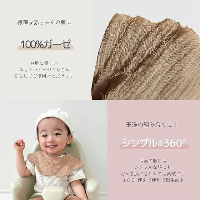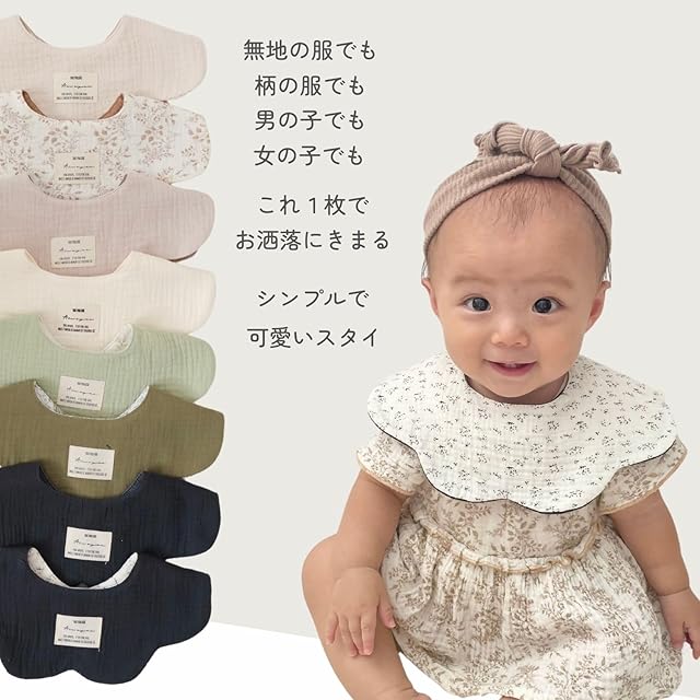 写真映え抜群の360度スタイ花びらのような形が可愛いらしく使いやすい360度タイプのスタイ。回して使えるため吸水範囲が広く、スタイの取り換え回数が減るのが嬉しいポイント♪スタイが回っていつの間にか、マントスタイルに…なんてことも心配ありません。
