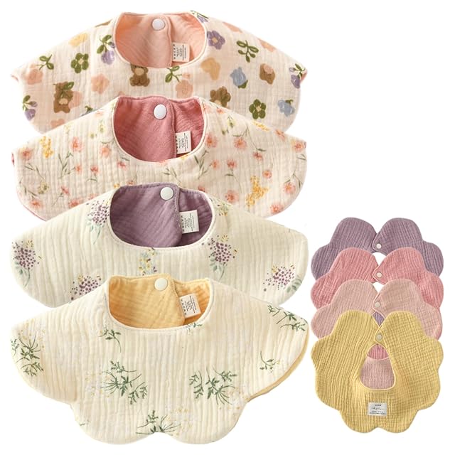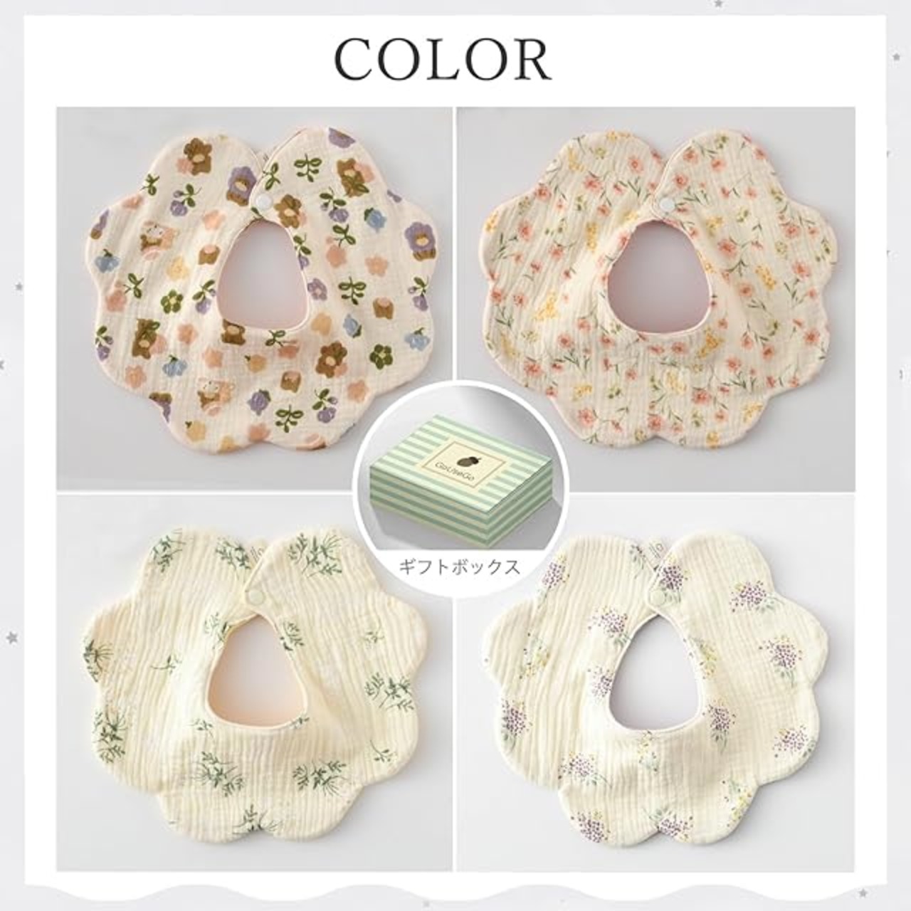[GoUseGo] ベビー 防水スタイ 両面リバーシブル 4枚セット ガーゼ地 七層構造 赤ちゃん ふんわり 360度スタイ 花びら 女の子 男の子 よだれかけ 無地 おしゃれ 新生児ギフト 出産準備 出産祝い