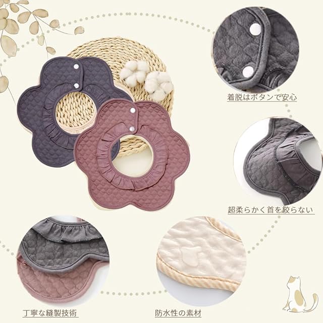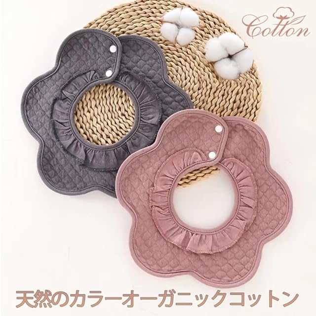 [Elf-feer] スタイ よだれかけ ベビー ビブ 綿 360 防水 赤ちゃん エプロン セット 無地 落ち着いたデザイン 食事用 花びら型