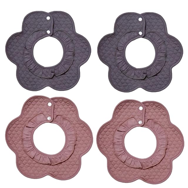 [Elf-feer] スタイ よだれかけ ベビー ビブ 綿 360 防水 赤ちゃん エプロン セット 無地 落ち着いたデザイン 食事用 花びら型 (フリル防水スタイ4枚入り)