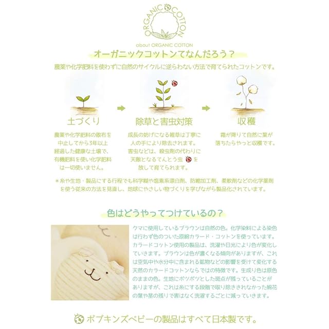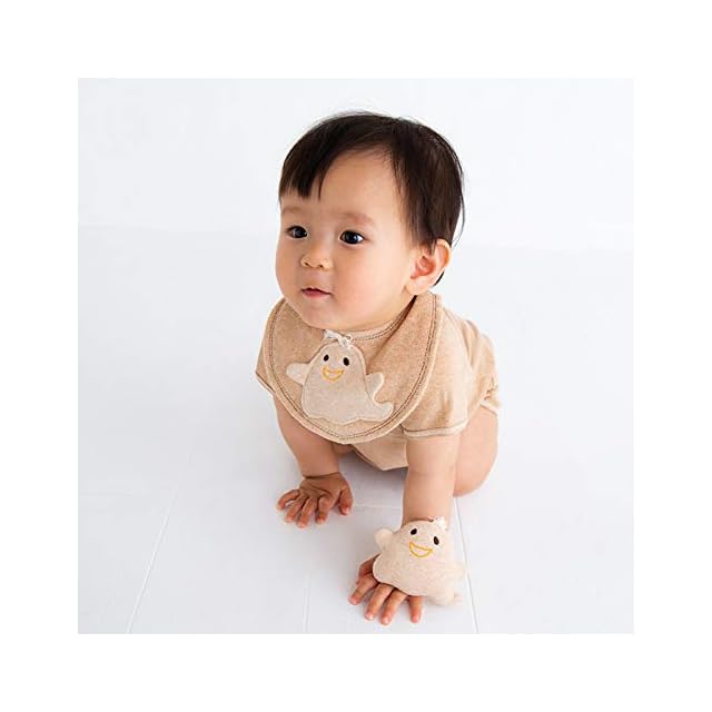 【pompkins BABY オーガニックコットン100%シリーズ】【おばけコレクション】ナチュラルは優しい透かし柄入り、ブラウンはドット柄のどちらも二重素材を採用しました。マジックテープで脱着します。サイズ(約):縦15cm×横17cm