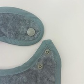 ミルクの吐き戻しもしっかり吸収する、新生児用ビブ。ボタンが後ろではなく横に付いて着脱が簡単。