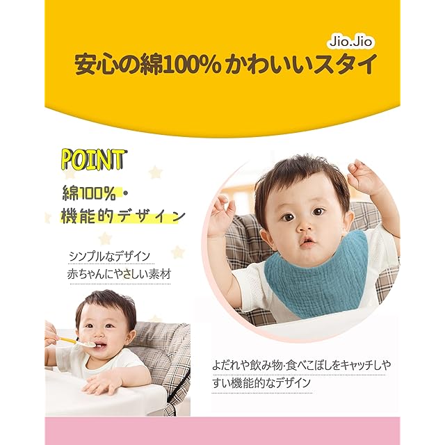 [Jio.Jio] スタイよだれかけ ベビー ビブ 綿100% 5枚セット 赤ちゃん エプロン 食事用 新生児用 柔らかい 通気性よい 調整可能 無地 男の子 女の子 保育園 入園準備 幼稚園用
