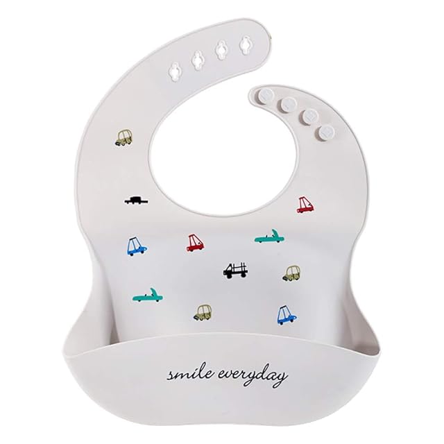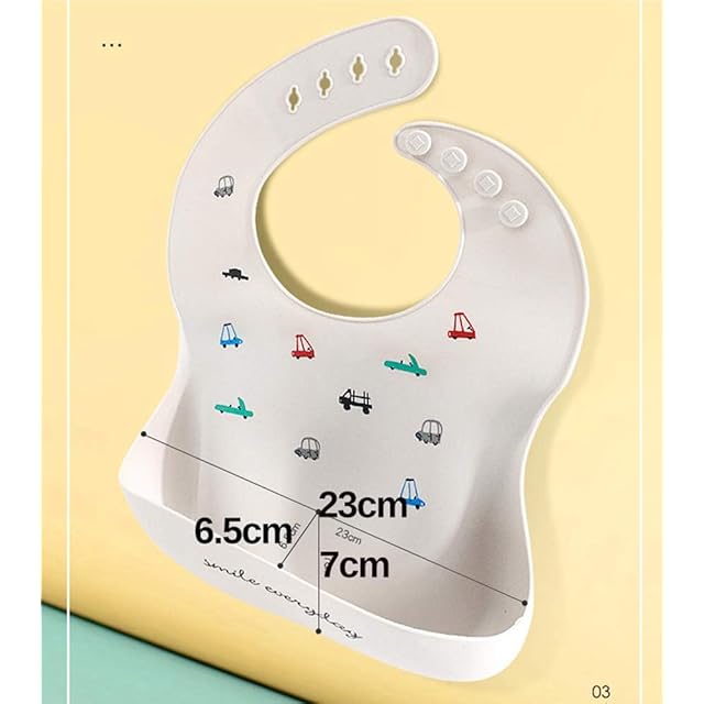 YINOON シリコン 食事用エプロン 防水 ベビースタイ ソフト ポケット付 よだれかけ ベビービブ 離乳食エプロン 保育園 洗いやすい 軽量 調節可能 持ち運び便利 (車柄)