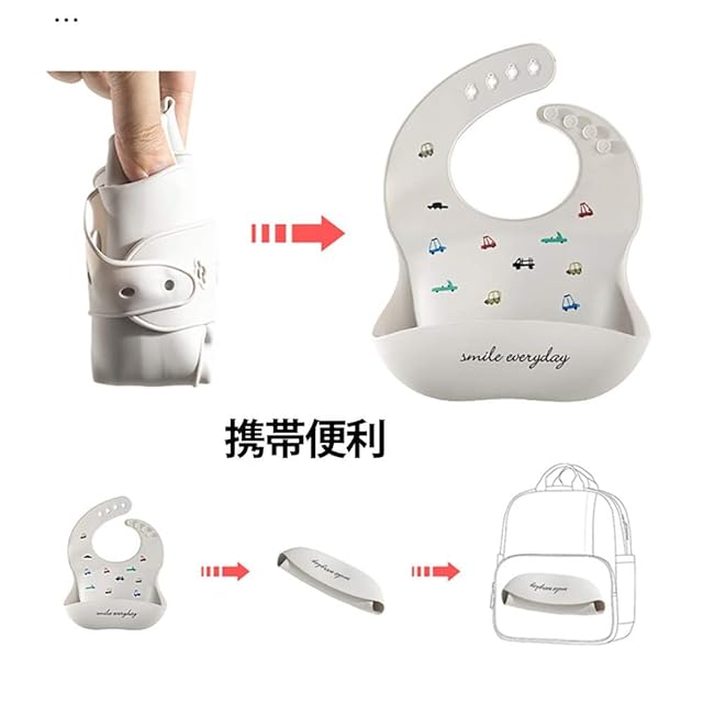 【持ち運び便利】:程よく柔らかい材質になっており、折り畳んでバッグに入れることができます。荷物が多くなりがちなママさんの負担をできる限り減らしますので、外出時や保育園などでお食事エプロンを持ち運ぶ際に便利です。