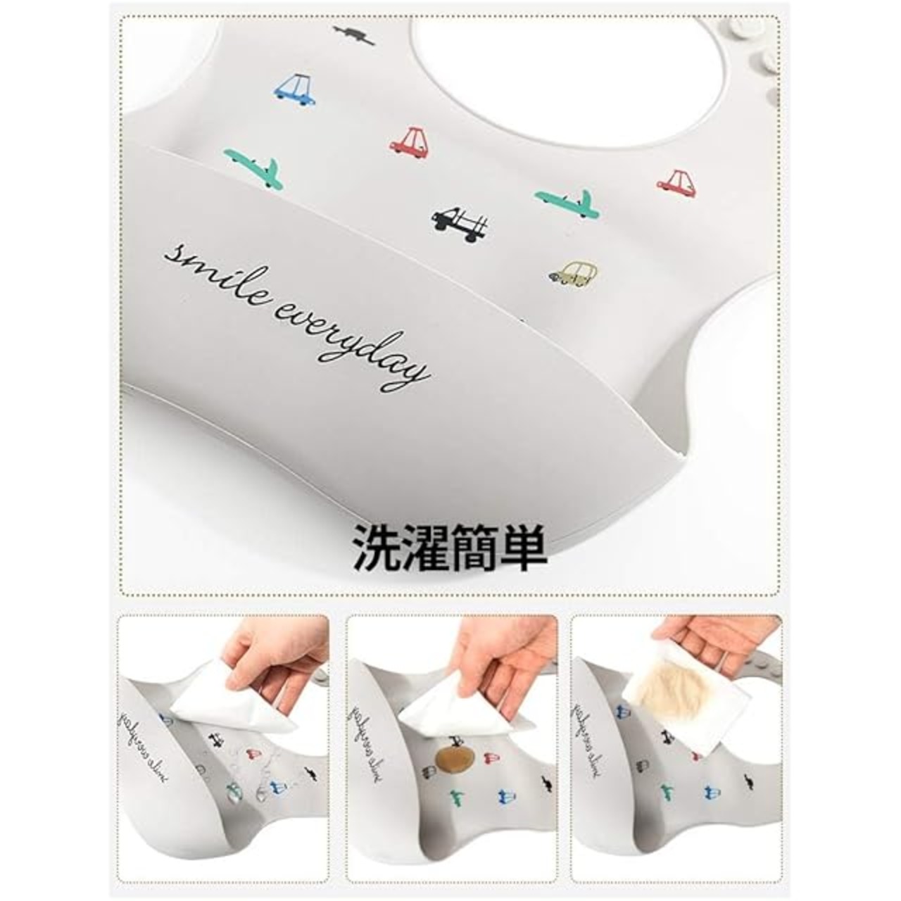 【非常に洗浄しやすい】:ベビー用の手拭きシートや湿らせた布を使用するか、流水でじゃぶじゃぶ水洗いするだけでOK、勿論、洗濯機や食器洗浄機でも洗うことができるので。