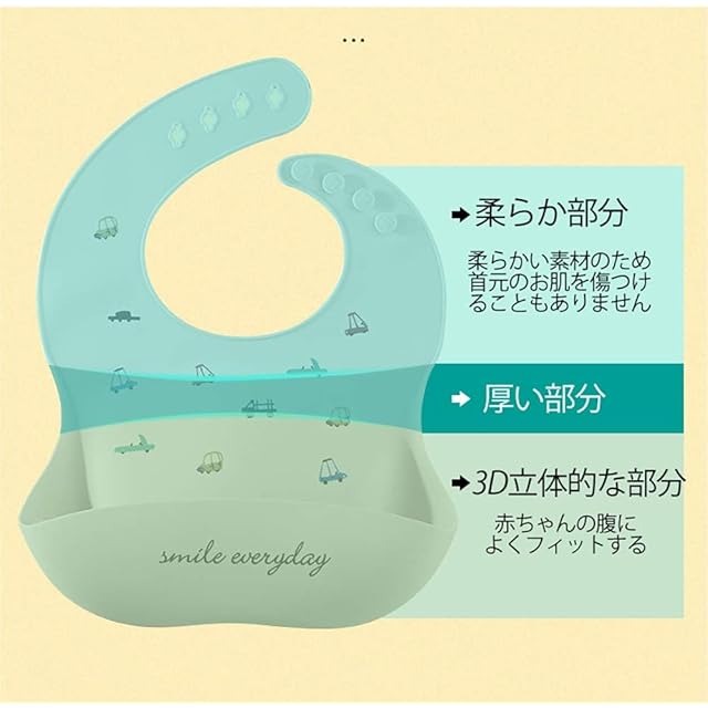 【親の安心の材質】:赤ちゃんの健康には最優先で気をつけており、健康に有害な科学物質を使用しないシリコン製の材質で、赤ちゃんが舐めても安心です。また柔らかい素材のため、首元のお肌を傷つけることもありません。