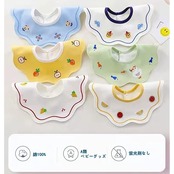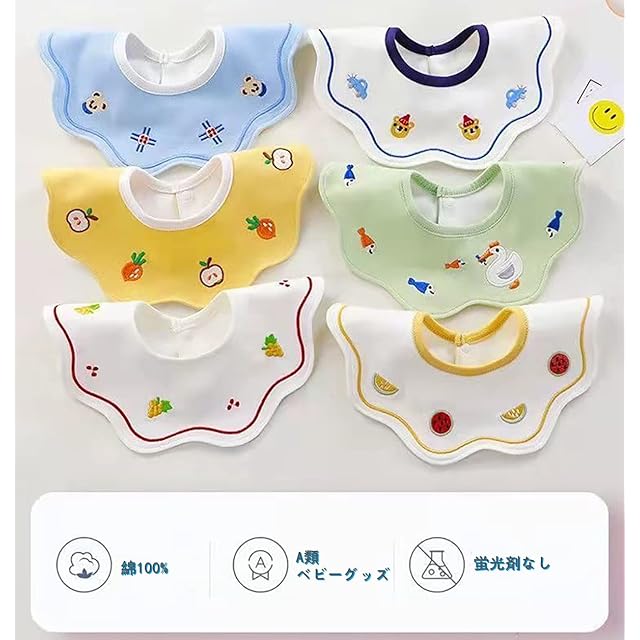 【綿100%】綿100%の天然素材のため肌触りがやさしく、デリケートな赤ちゃんのお肌を守ります。 【吸水性、通気性が抜群】優れた吸水効果と通気性が持っているため、赤ちゃんはいつでもさらさらで、きれいにいられます。 【サイズ】26cm×26cm、首の幅:9cm、0-3歳の赤ちゃんにぴったりのスタイです。 【形】360°回転しても大丈夫!かわいい刺繍もあってベビーギフトにおすすめです。 【プレゼント】新生児のプレゼント