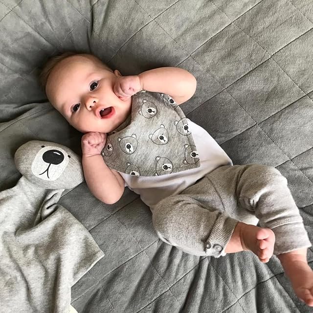 ベビーの動きを邪魔しない絶妙なサイズ感と柔らかな綿100%のジャージー素材で、コーディネートのワンポイントにぴったり。裏面は肌触りの良いパイル地で吸水性も抜群です。汚れたらお洗濯できるので、いつでも清潔に使えます。スナップボタンを留めるだけで簡単に装着でき、ベビーの成長に合わせて二段階に調節ができます。動物たちが総柄になったスタイリッシュなトライアングル型のビブ。